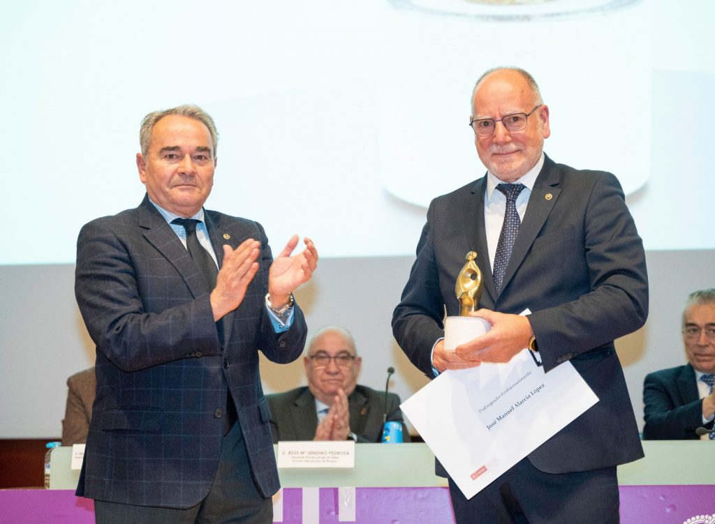 En este evento, el COAATBU reconoció la notoriedad profesional de José Manuel Alarcia López por su amplia experiencia laboral como Perito Judicial, su integridad y buen hacer en la profesión. Desde sus inicios en la actividad profesional ha visado más de 2500 intervenciones, y realizado más de 1000 Informes Periciales. Es, además, profesor del colegio Blancas de Castilla. El COAATBU destaca sus valores personales y humanos, siendo un Arquitecto Técnico, versátil, de alta capacidad y de reconocida y probada profesionalidad y experiencia.